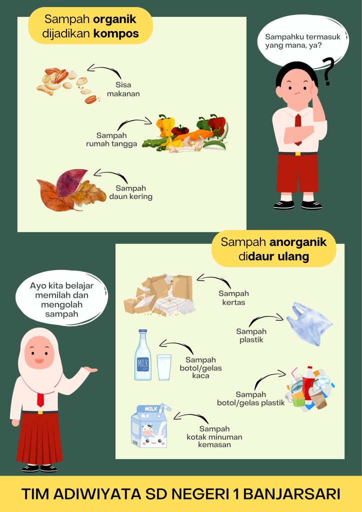 Tim Adiwiyata SD Negeri 1 Banjarsari mengajak seluruh warga sekolah untuk memilah sampah berdasarkan jenisnya.