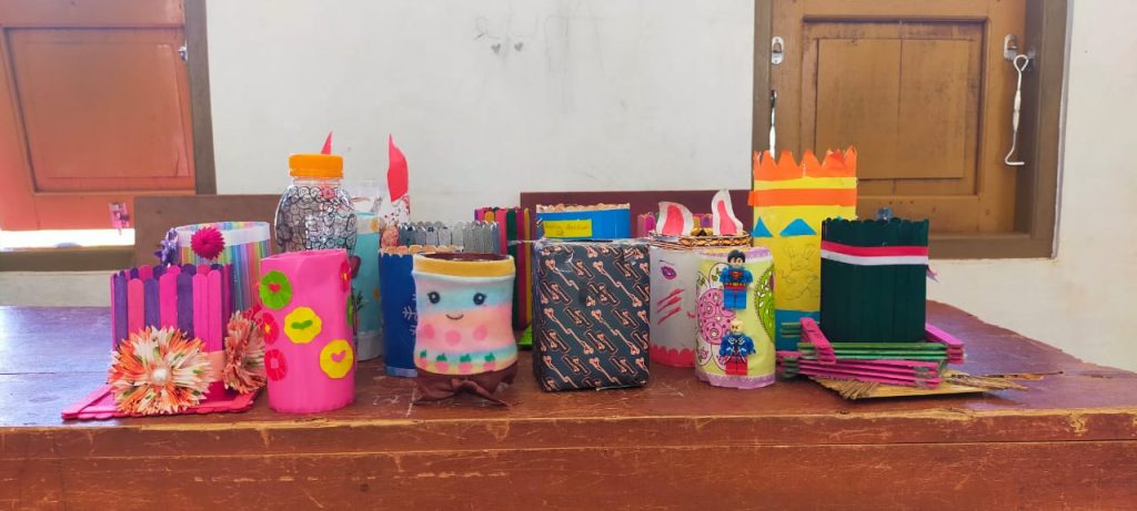 Sedangkan, sampah anorganik dapat dimanfaatkan kembali melalui proses daur ulang. Contohnya seperti kreasi siswa kelas II B ini.