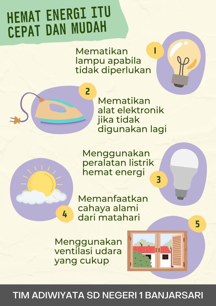 Tim Adiwiyata SD Negeri 1 Banjarsari mengajak seluruh warga sekolah untuk berhemat energi dalam kehidupan sehari-hari.